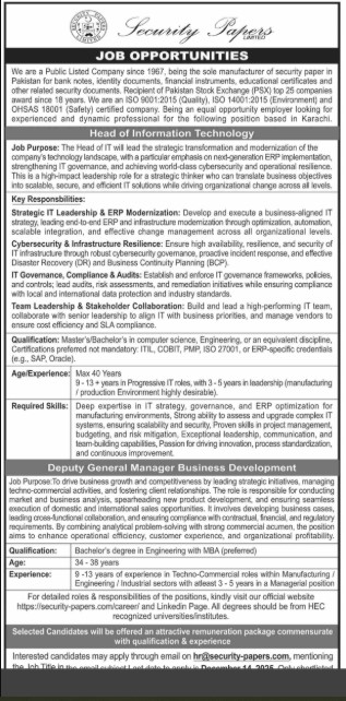 Only male candidates can apply for this Head Of Information Technology Jobs In Lahore December 2025 Qualification /Experience Required: At least Bachelor’s degree in Law (LLB or equivalent) from a recognized institution. Excellent written and verbal Qualification: Master’s/Bachelor’s in computer science, Engineering, or an equivalent discipline, Certifications preferred not mandatory: ITIL, COBIT, PMP, ISO 27001, or ERP-specific credentials (e.g., SAP, Oracle), and more experienced candidates should apply before 14 December 2025.